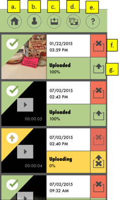 D. Access to IOS device’s Public Camera Library: This button allows the user/login client to access their device’s images/videos and add them to the upload list. These images/videos can then be uploaded to the Connect site.